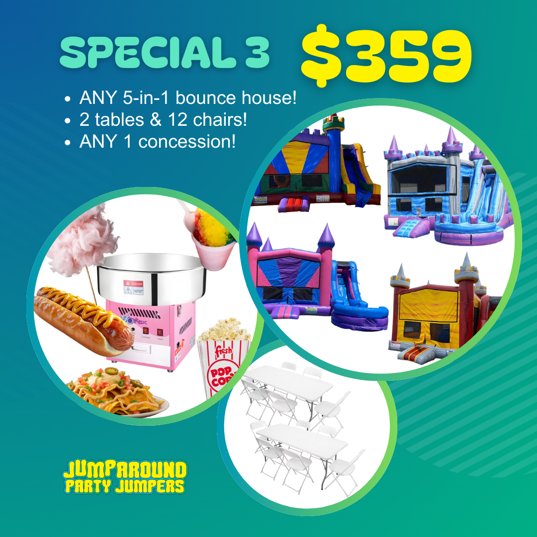 Regular price $259.00Sale price $259.00 Regular priceUnit price / perANY 13x13 bounce house 2 tables and 12 chairs ANY 1 concession